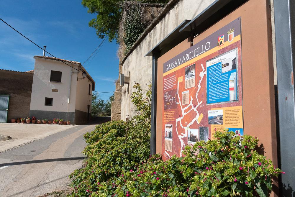 La bonita localidad de Sarsamarcuello está asentada en plena Sierra de Loarre entre Ayerbe, Riglos y Loarre. Domina una panorámica envidiable rodeada de escarpadas montañas y con la Peña Sol al fondo.